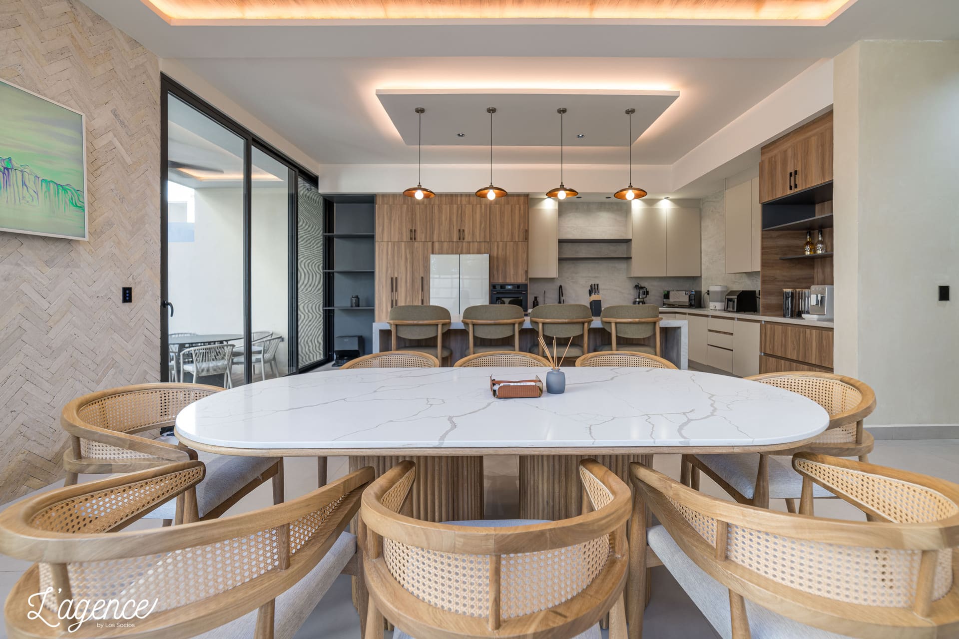 La propiedad es completamente eléctrica y cuenta con paneles solares y calentador solar, garantizando bajo consumo energético. Su alberca privada revestida en piedra Sukabumi y equipada con bomba de calor invita a disfrutar del clima caribeño durante todo el año. En el interior, destacan los acabados en cuarzita natural, los baños flotantes, la doble altura en la sala principal y una cocina de diseño con placa tecnológica, purificador de agua y electrodomésticos integrados.