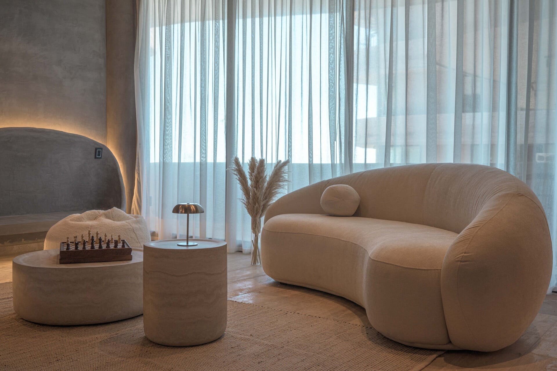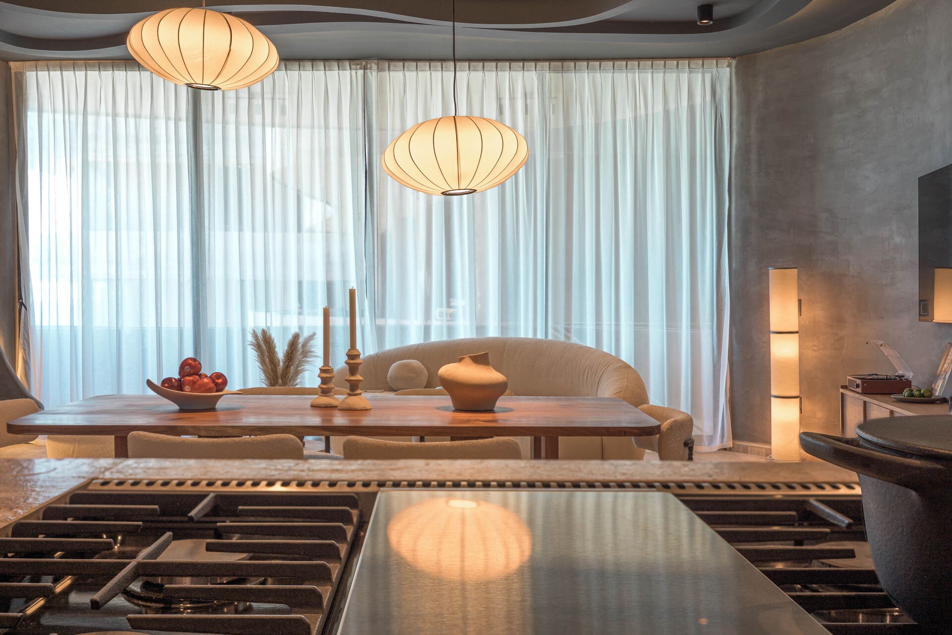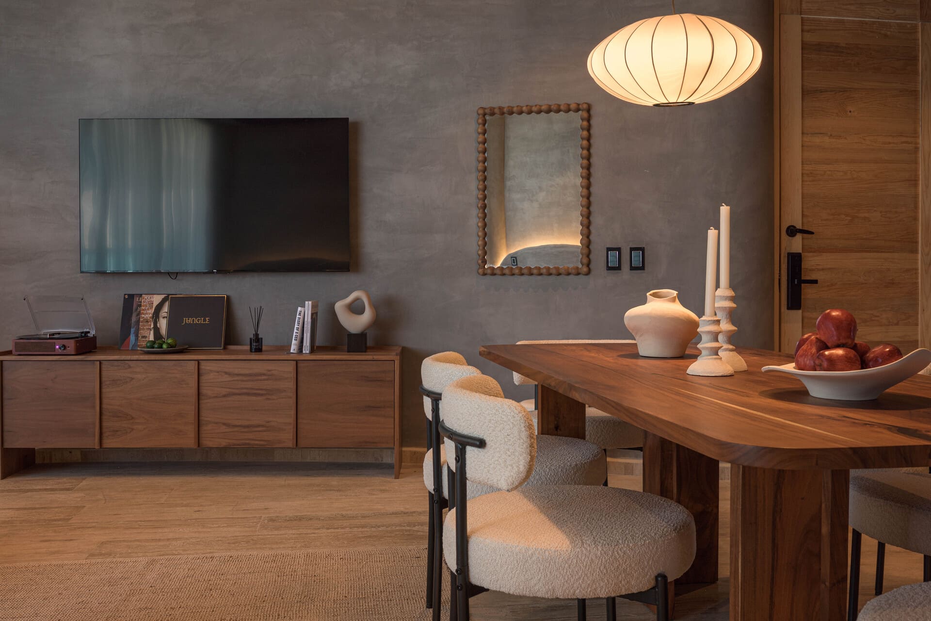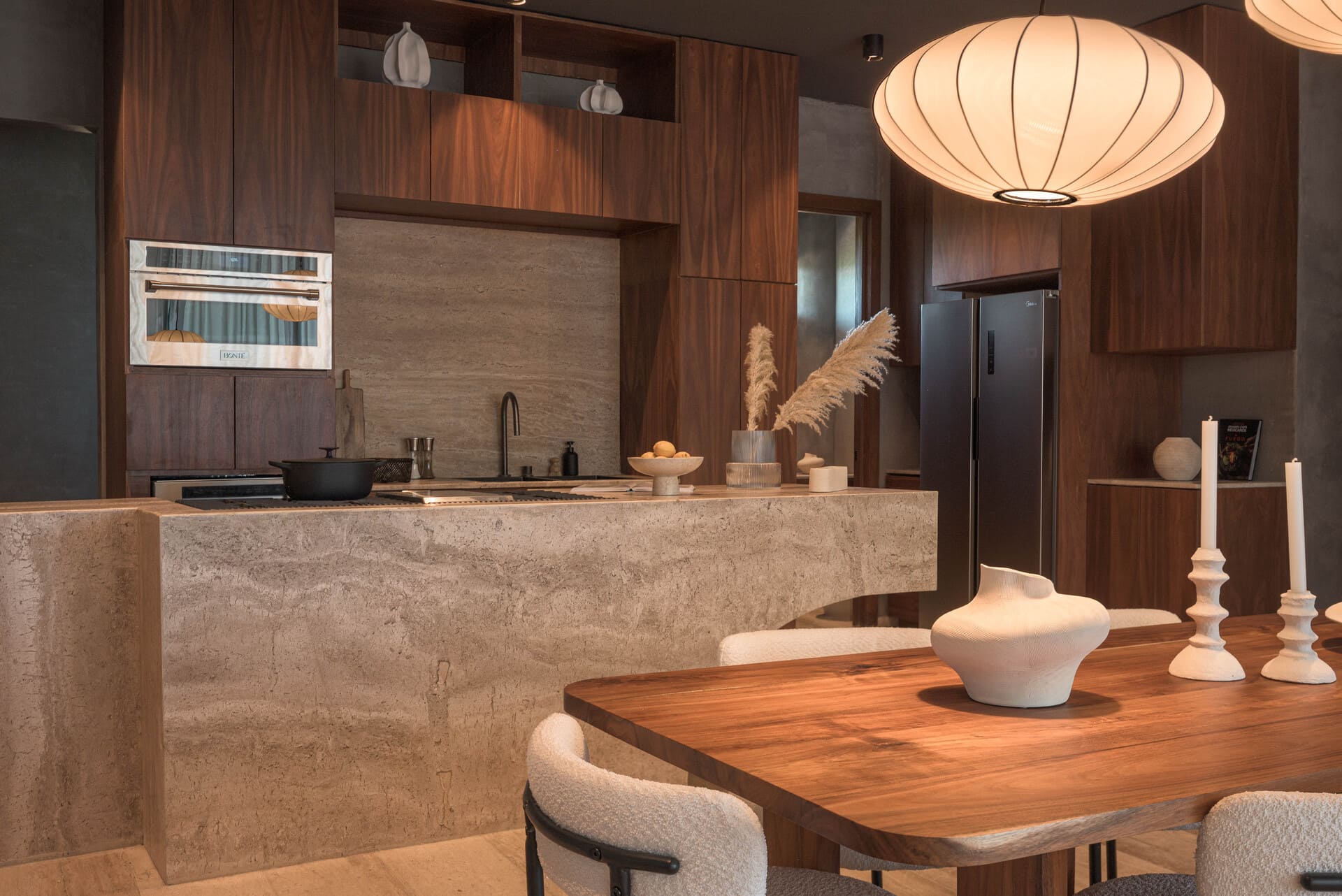 Con una superficie total de 208 m², este departamento ofrece tres amplias habitaciones y tres baños y medio, con un diseño interior que fluye de manera natural entre los espacios. Los acabados de lujo y las formas curvas evocan la tranquilidad del entorno tropical, mientras las vistas panorámicas al mar llenan cada rincón de luz y serenidad.